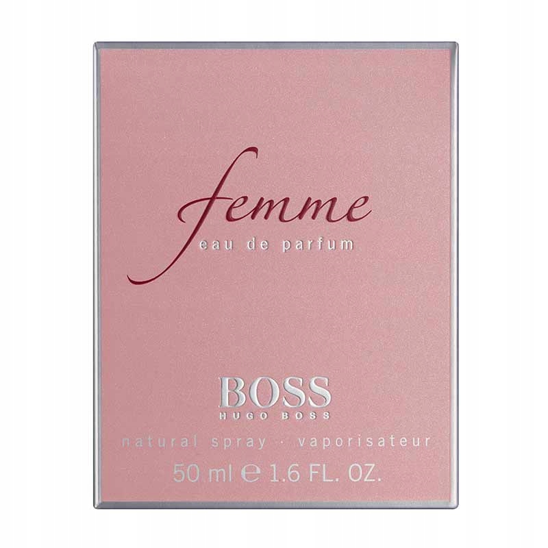 Zapach BOSS Femme to zamknięte we flakonie połączenie siły i subtelności, Współczesność wizerunku kobiety, w którym delikatność i wdzięk stanowią o sile jej charakteru. BOSS Femme to zapach dla nowoczesnej kobiety, która zawsze pozostaje sobą. Zmysłowy aromat z pewnością docenią eleganckie kobiety, które mają wyrafinowany gust. Kobieta otoczona aromatem BOSS Femme staje się zmysłowa i niezależna, pewnie idąc przez życie.